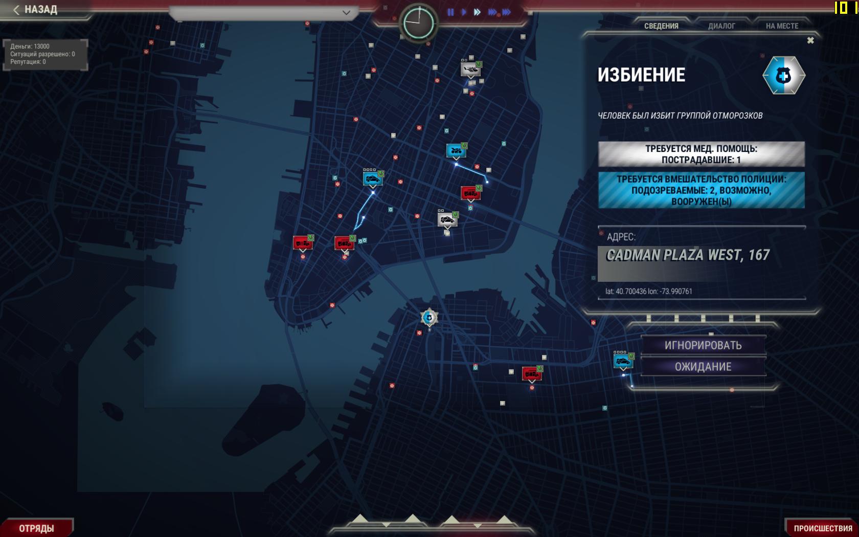 УПРАВЛЯЙТЕ СЛУЖБАМИ Отряды полиции, пожарных и медиков находятся в полном вашем распоряжении. Каждый отряд может использовать одно из множества транспортных средств (от стандартных автомобилей до вертолётов), снаряжение (бронежилеты, аптечки, ящики с инструментами), а также состоять из членов команды с различными навыками.