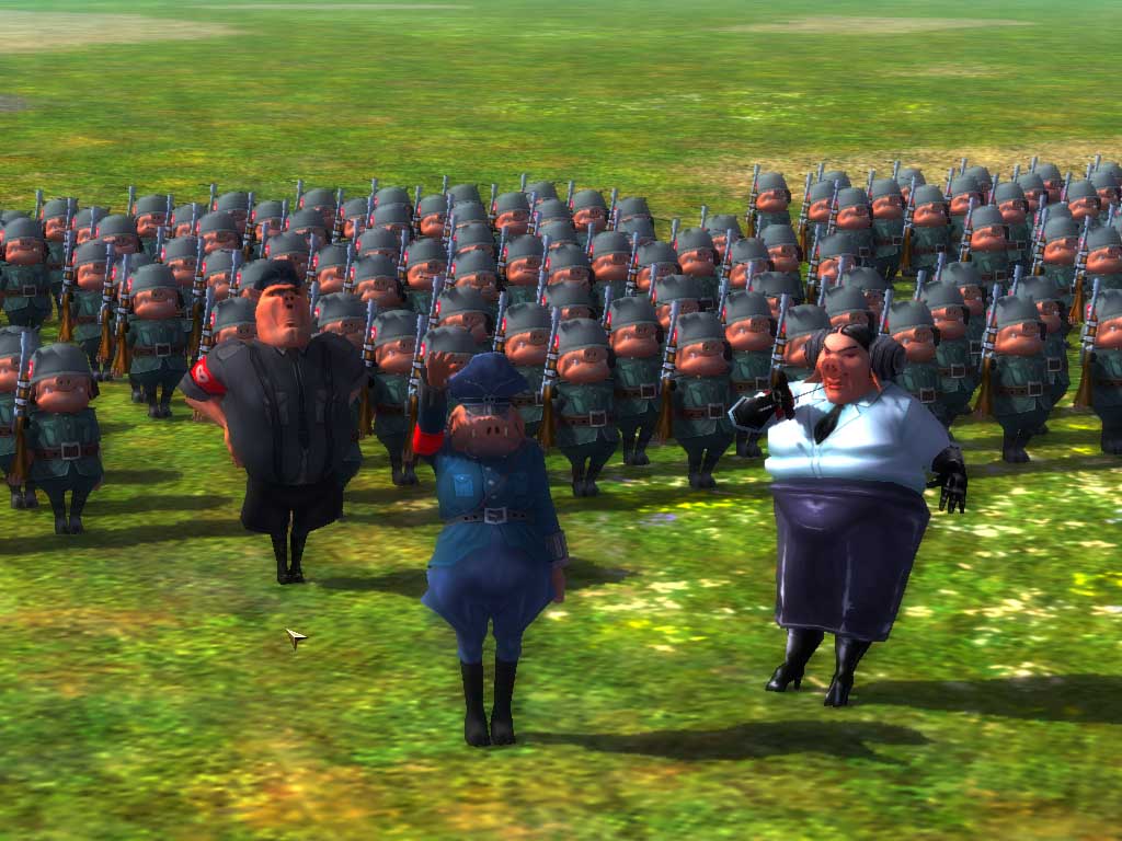 - Хрюкающая угроза подкрадывается к сказочной ферме. Копыто зла вот-вот обрушится на головы ее обитателей. Кто остановит орду агрессивных свинтусов, ведомую бесноватым и излишне амбициозным поросенком? Кто поведет в бой мирных кротов, пингвинов, козлов и бобров? Мы уже знаем ответ! Надменная ухмылка, темные очки, берет, пальцы нетерпеливо барабанят по рукояткам пистолетов на бедрах...