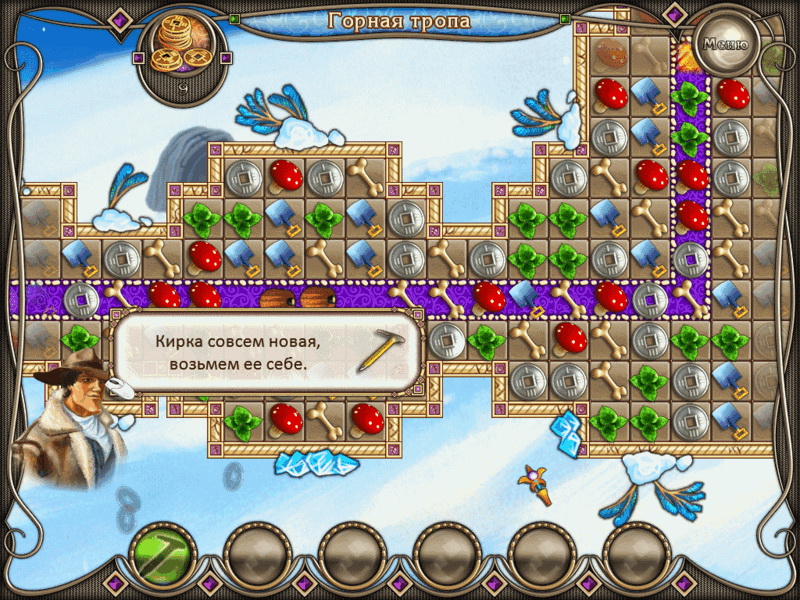 Отправляйтесь вместе с Изабеллой на поиски ее семьи, которая находится в заточении. Спуститесь в заброшенную шахту, исследуйте горные тропы и пещеру охотников. По пути разгребайте завалы, уничтожая фишки одного цвета, и собирайте сокровища — здесь они на каждом шагу!