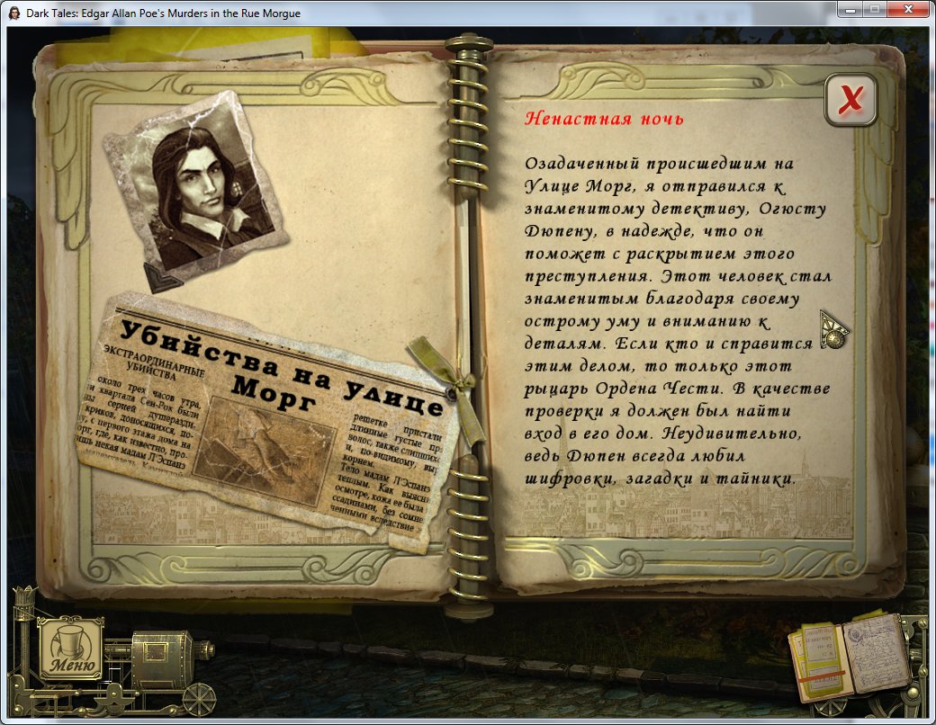 Перед вами игра по мотивам произведения Эдгара Аллана По - Убийство на улице Морг. Этот рассказ стоит у истоков жанра детектива. Таинственное и крайне жестокое убийство вдовы и ее дочери ставит в тупик полицию Парижа, на помощь полицейским приходит месье Дюпен, человек с необычайно развитыми аналитическими способностями.