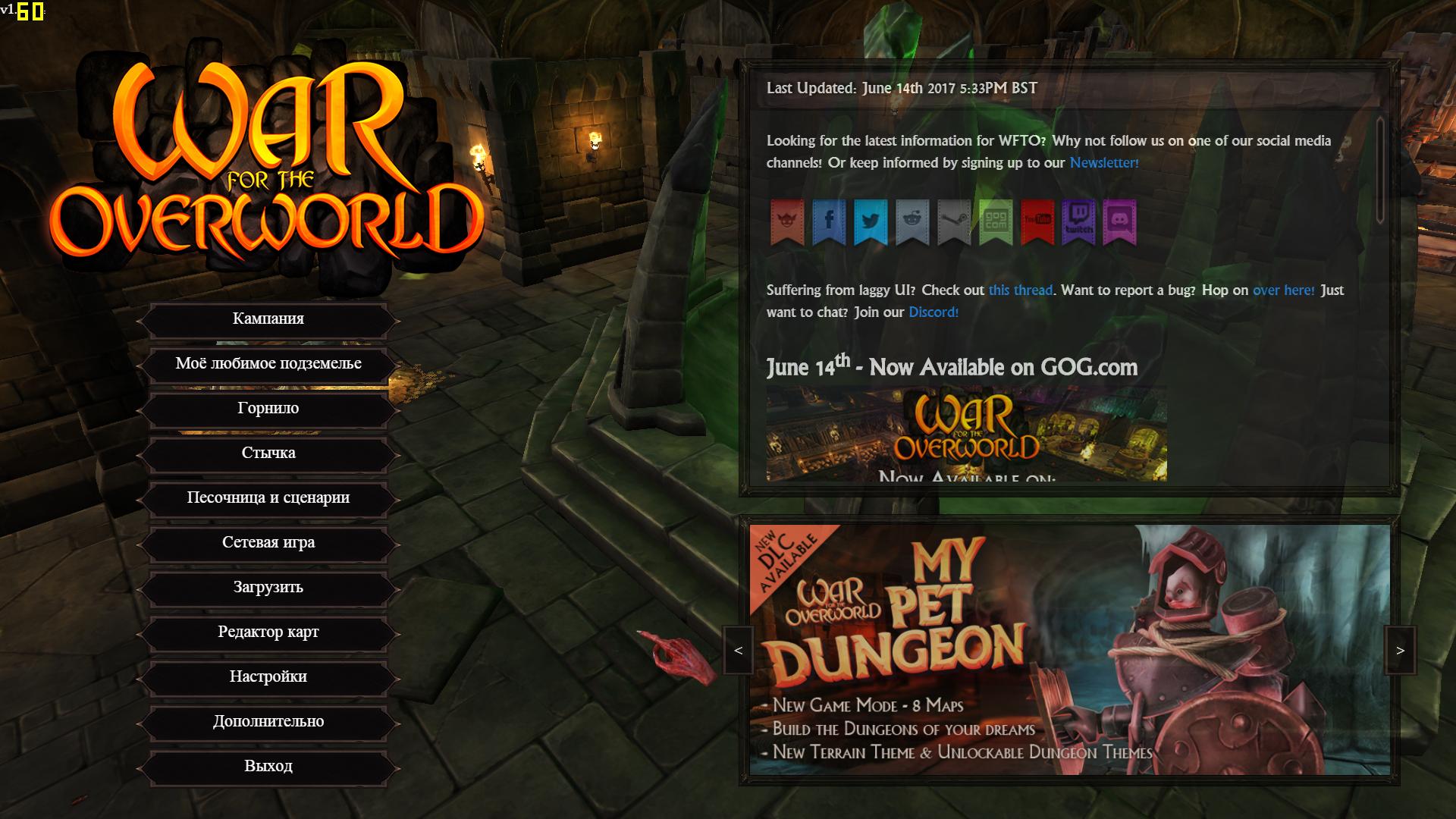Устали захватывать чужие подземелья? Вы до смерти устали вспарывать животы сотням плохих парней, лишь бы заработать чуток золота да найти ботинки получше? Вы начинаете думать, что жизнь героя — это не для вас? Добро пожаловать в War for the Overworld! War for the Overworld берет лучшее из двух жанров — стратегии в реальном времени и симулятора бога — и позволяет вам управлять жизнью подземелья. Вы играете за могущественного злобного Владыку, который когда-то был изгнан в Эфир. Движимый неутолимой жаждой крови и завоеваний, владеющий непревзойденной темной силой, он возвращается, чтобы покорить мир! В его отсутствие Подземный мир ослаб. Он дрожит в страхе перед Империей Поверхности, которая набралась силы и уверенности с тех пор, как тихо ушла в отставку и прекратила борьбу со злом. Создавайте свое подземелье на просторах этого мира, стройте уникальные комнаты, чтобы привлечь множество самых разных существ, которые с радостью будут работать и биться за вас. Помимо верных подданных, в вашем распоряжении находятся разрушительные заклинания и могущественные ритуалы, которые вы можете использовать против любых добреньких героев (или своих конкурентов), которые осмелятся вторгнуться в ваши нечестивые чертоги. Непревзойденные темные силы и могучая армия кровожадных существ — что еще нужно для победоносной войны за поверхность?!