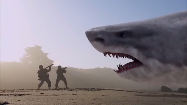 Морской биолог ведет расследование нападений пробудившейся гигантской доисторической акулы, способной плавать, передвигаться по суше и летать.