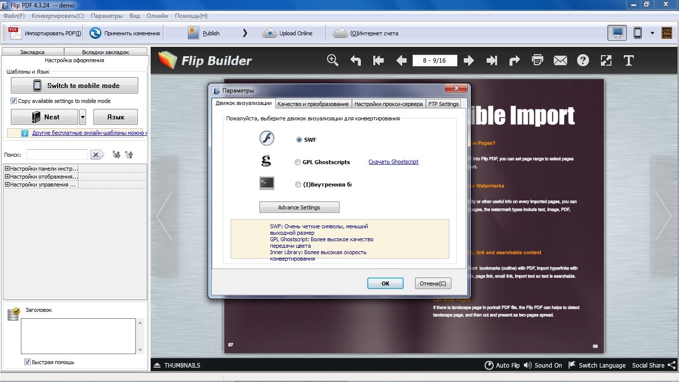 Flip PDF - программа, которая позволит произвести конвертирование любого документа в формате PDF в потрясающие буклеты с эффектом перелистывания страниц и изумительным звуком! Только представьте, теперь вы сможете создавать цифровые журналы и каталоги, похожие на настоящие книги, без специальных знаний программирования! Если вам интересно не просто читать документ, а вы хотите добиться эффекта просмотра журнала или книги, то данная программа позволит вам это сделать.
