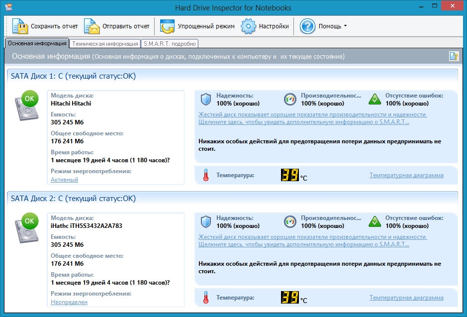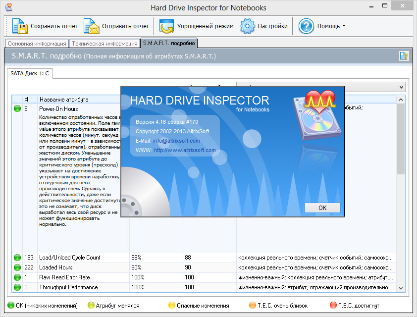 Hard Drive Inspector – мощная, удобная и эффективная программа, предназначенная для контроля за состоянием жестких дисков. Версия для ноутбуков обладает той же функциональностью, что и стандартная редакция программы, но при этом учитывает конструктивные особенности компьютеров. Ценность данных, сохраненных на жестком диске компьютера, зачастую превосходит стоимость компьютера как такового. Когда диск выходит из строя (что случается довольно часто), информация, хранимая на нем, теряется частично или полностью. Используя технологию S.M.A.R.T., Hard Drive Inspector осуществляет наблюдение за текущим состоянием различных жизненно-важных параметров, описывающих надежность и производительность диска. Программа анализирует эти данные и предупреждает пользователя, когда параметры указывают на критическое падение надежности винчестера. Это во многих случаях позволяет предотвратить потерю информации.