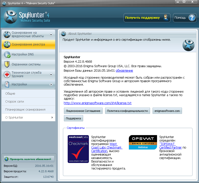 Версия программы: 4.23.2.4686 Официальный сайт: SpyHunter Язык интерфейса: Русский, Английский Лечение: не требуется (инсталлятор уже пролечен)
