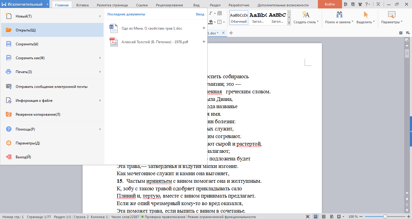WRITER поддерживает форматы DOC, DOCX, TXT, HTM, DOT, DOTX и полностью совместим с Microsoft Word®. Это дает возможность открывать и редактировать документы, полученные от других людей, а затем сохранять их прямо в WPS Office с полной уверенностью, что другие пользователи смогут открыть их без каких-либо проблем.