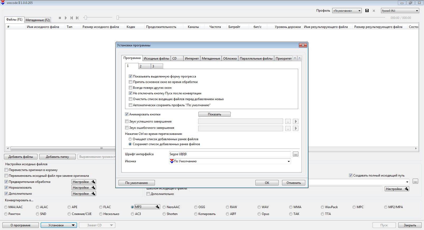 Хrecode II – уникальный конвертер аудио , снабженный удобным многоязычным «drag and drop» интерфейсом. Позволяет преобразовывать аудиоданные большинства распространенных форматов (всего 54) в m4a, alac, ape, flac, mp3, mp4 (используя NeroAAC), ogg, raw, wav, wav(rf64), wma, WavPack, mpc, mp2, Speex, ofr, ac3, aiff, tak.