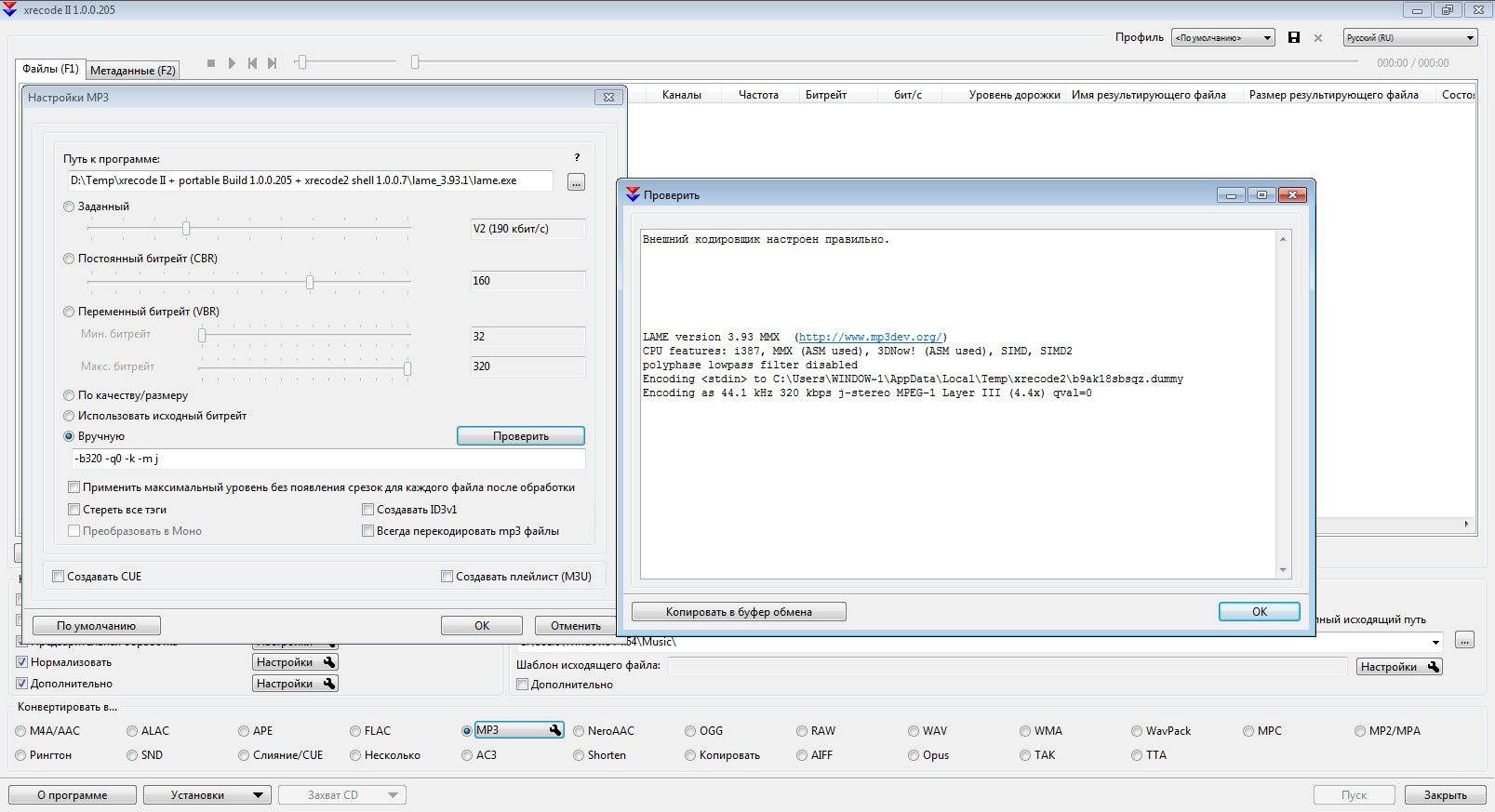 2. В настройках mp3 укажите путь к кодеку: C:Program Files (Program Files(x86))lame_3.93.1lame.exe